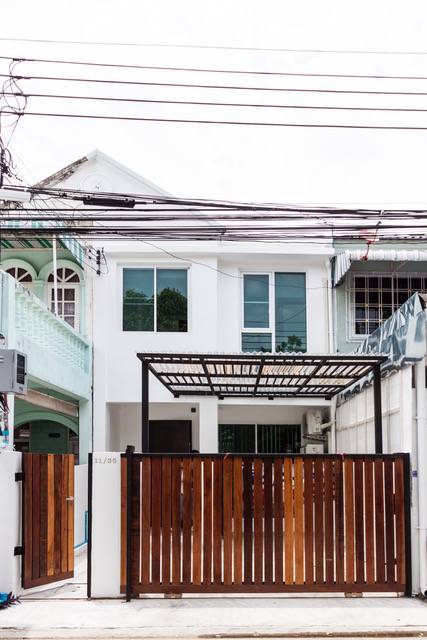 townhouse at Sukhumvit 101 (BTS Punnawithi) enter sub soi Punnawithi 39. The area of the house is 22SQW and the space usage is 140 SQM. 2 bedroom/3bathroom the rental price is 26,000