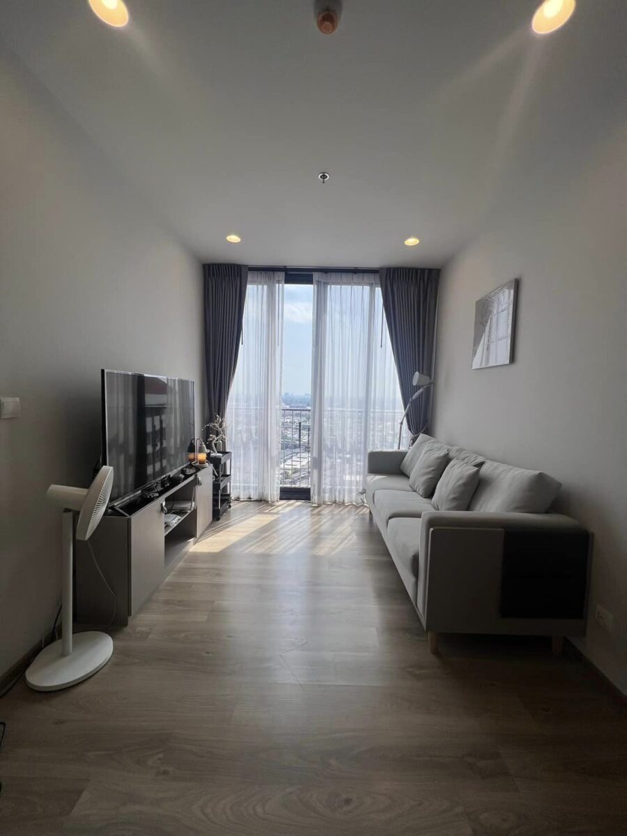 Oka House, a new resort-style condo in the center of Bangkok. Connect to various conveniences, such as Skytrain, shopping malls, markets, universities, and hospitals. This is a quality project from Sansiri that the beauty of nature is created to lobby for full relaxation. Enjoy the unlimited scenery of the Bang Krajao river curve from the rooftop as if you are sitting amid a meadow of the valley. Relax in a swimming pool with a length of 40 meters, a jacuzzi, and hydrotherapy to complete your relaxation. Be more modern with a smart design of a digital smart system to control everything at your fingertips, such as a common area reservation system, mail and parcel notification, door access via QR Code, the digital vegetable plantation system, and a trendy and smart home appliances control system via applications. These installations are to give a balance of living to everyone in the family. The room with a bay-window design has a full-height for a 180-degree view and good ventilation. Also, it is furnished with furniture from leading brands that serve all functions of living.